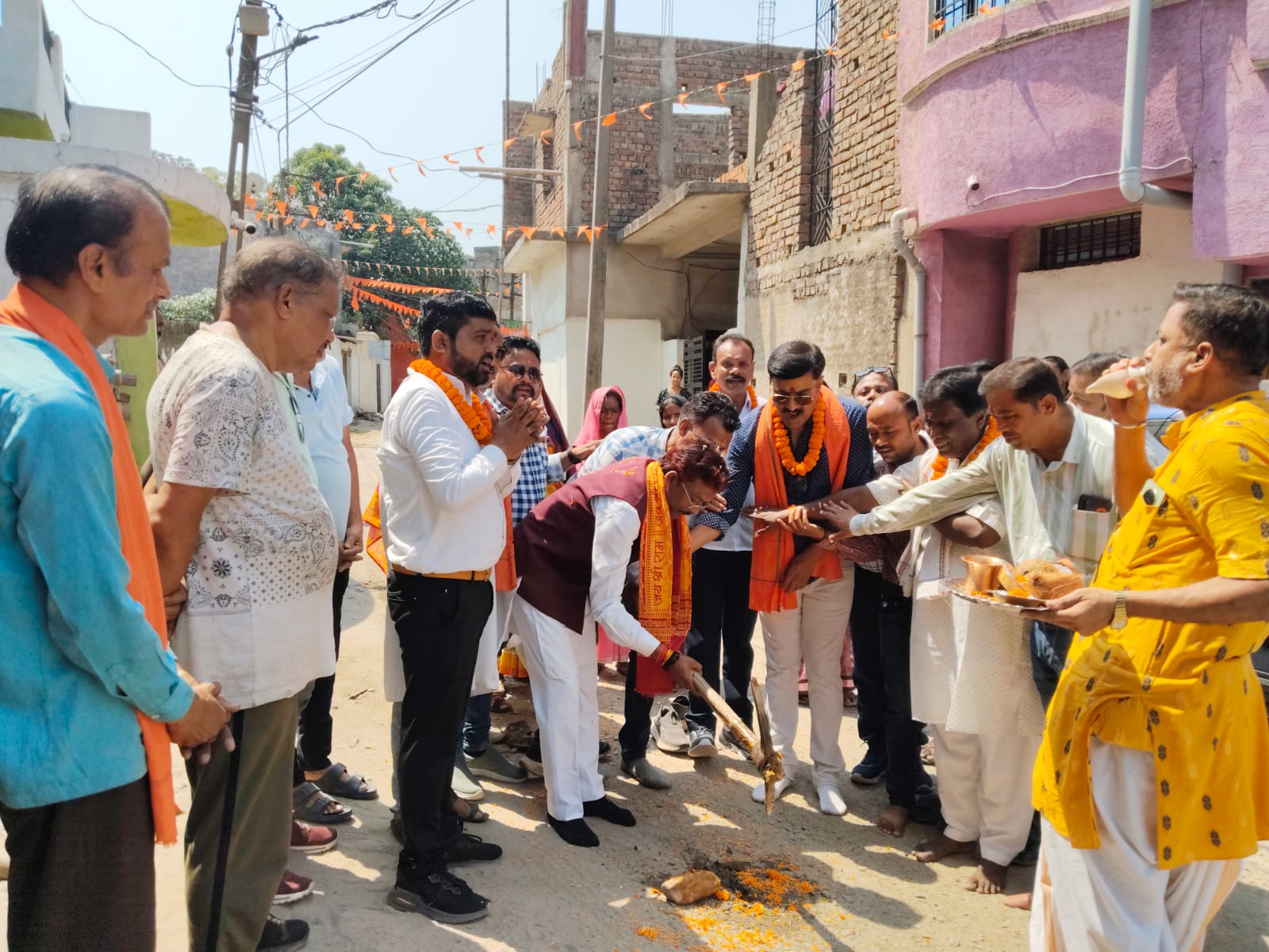 वार्ड क्रमांक 9 लता सदन से पप्पू किराना तक किसी सड़क निर्माण की मोहल्ले वासियों ने मांग की थी। मांग को देखते हुए निगम प्रशासन द्वारा स्टीमेट बनाकर विधिवत टेंडर किया गया था। सभी प्रक्रिया और कार्यादेश जारी होने के बाद आज महापौर श्री चौहान ने विधिवत पूजा अर्चना करने के बाद कार्य का शुभारंभ किया। इस मौके पर उपस्थित मोहल्लेवासियों को संबोधित करते हुए महापौर श्री चौहान ने कहा कि किसी सीसी सड़क मोहल्लेवासियों की पुरानी मांग थी, जो आज पूर्ण हो रही है। इससे मोहल्ले के लोगों को हर मौसम में भी आवागमन में सुविधा मिलेगी। उन्होंने इसी तरह शहर के नागरिकों की मांग पर कार्रवाई करते हुए शहर विकास के लिए सतत कार्य करने की बात कही। इस दौरान उन्होंने पूर्ण गुणवत्ता और समय सीमा पर कार्य पूर्ण करने के निर्देश दिए। भूमि पूजन कार्यक्रम में वार्ड पार्षद अमित शर्मा, पार्षद मुक्तिनाथ बबुआ, सब इंजीनियर राजेश पंडा, श्रवण सिदार, बबला बैरागी, चिंटू शबरी, गोपाल सिंह, लता प्रधान, नीरज बरवा, तृप्ति सिंह, ललिता महंत,अनिता मसीह, हरिशरण, पार्वती यादव, मंजू यादव, मनमती विश्वकर्मा आदि मोहल्लेवासी बड़ी संख्या में उपस्थित थे।