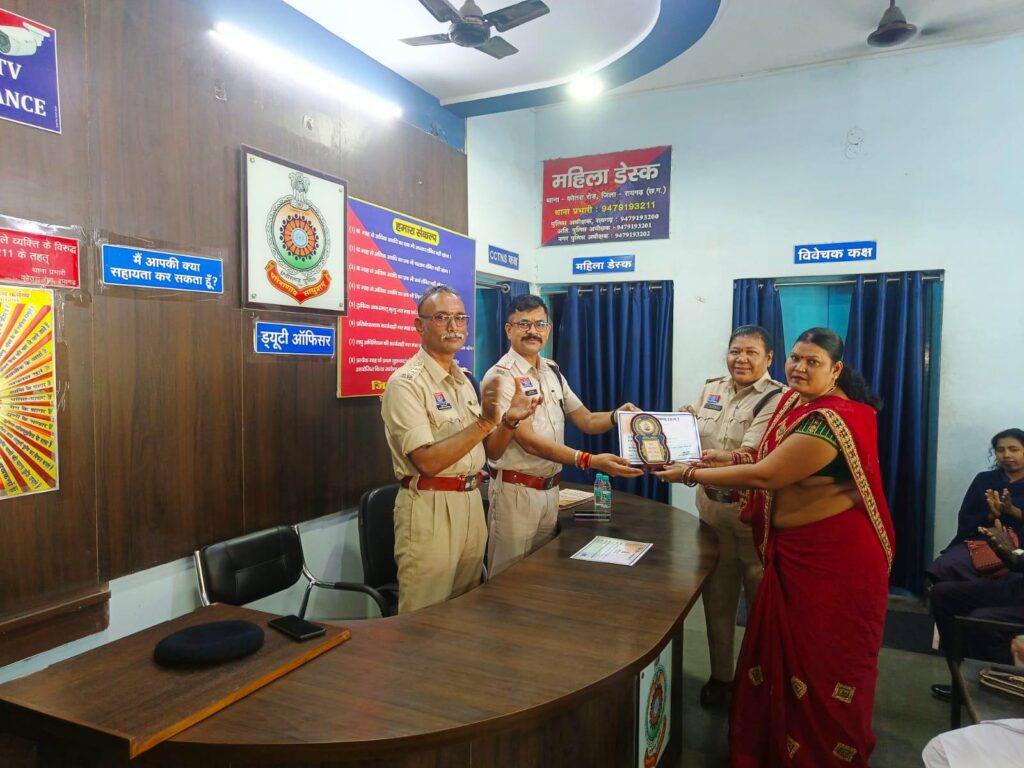 पुलिस मित्र के रूप में निःस्वार्थ भाव से कार्य कर रहे नरसिंह पटेल (उम्र 35, पचेड़ा), विकास कुमार (उम्र 46, वार्ड क्रमांक 15 किरोड़ीमल नगर) और लक्ष्मी चंद्रा (उम्र 43, वार्ड क्रमांक 11 किरोड़ीमल नगर) को भी इस अवसर पर सम्मान प्रदान किया गया।