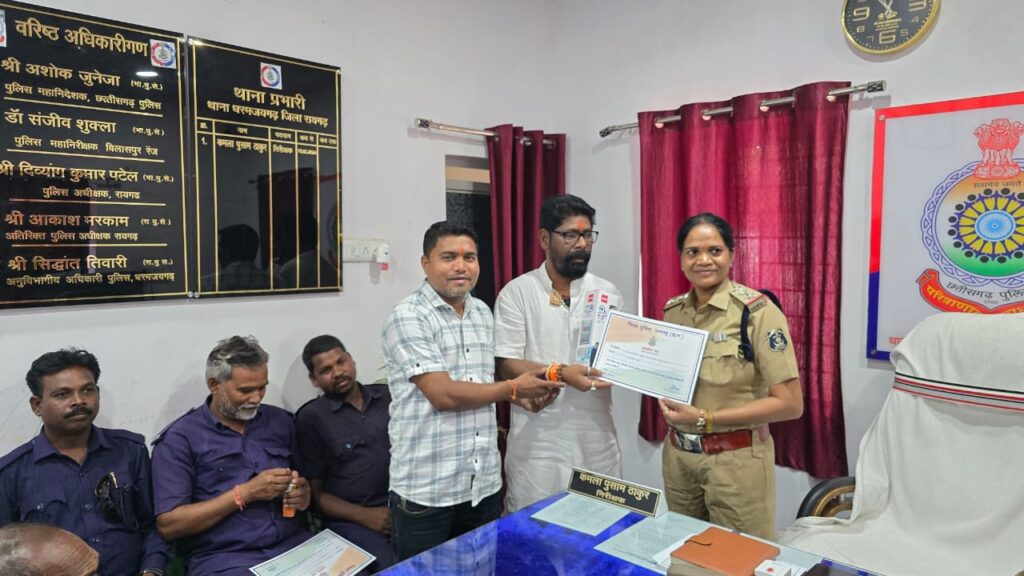 रायगढ़ । अपराध नियंत्रण में जनसहयोग की भूमिका को प्रोत्साहित करते हुए धरमजयगढ़ पुलिस ने 14 अप्रैल 2025 को अपने कार्यक्षेत्र में सक्रिय और सराहनीय योगदान देने वाले नागरिकों को प्रशस्ति पत्र देकर सम्मानित किया। कार्यक्रम का आयोजन थाना परिसर में किया गया, जिसमें कोटवार, स्टॉफ नर्स, फॉरेस्ट विभाग के सदस्य, स्वच्छता दीदियों सहित पार्षदों को भी शामिल कर उनके कार्यों की सराहना की गई।