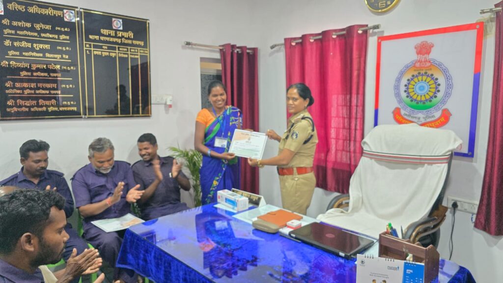 पुलिस अधीक्षक दिव्यांग पटेल के निर्देशन में जिलेभर में अपराध रोकथाम के लिए जनभागीदारी को बढ़ावा देने का प्रयास किया जा रहा है। इसी कड़ी में थाना प्रभारी धरमजयगढ़ निरीक्षक कमला पुसाम द्वारा अपने क्षेत्र में समाजसेवी भावना से जुड़े लोगों को विशेष रूप से सम्मानित किया गया। सम्मान पाने वालों में पार्षद टार्जन भारती, पार्षद विजय यादव, विमला खेस, बालमति एक्का सहित ग्राम कोटवार, स्वास्थ्य विभाग की स्टॉफ नर्सें, फॉरेस्ट विभाग के कर्मी और स्वच्छता अभियान से जुड़ी दीदियों के नाम प्रमुख रहे।