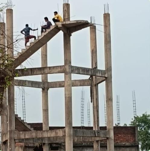 निर्माणाधीन टंकी में बेस खंभा बनाकर अटकाया