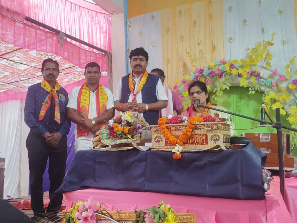 श्रीमद् भागवत कथा सुनने पहुंचे जिला भाजपा मंत्री महेश साहू