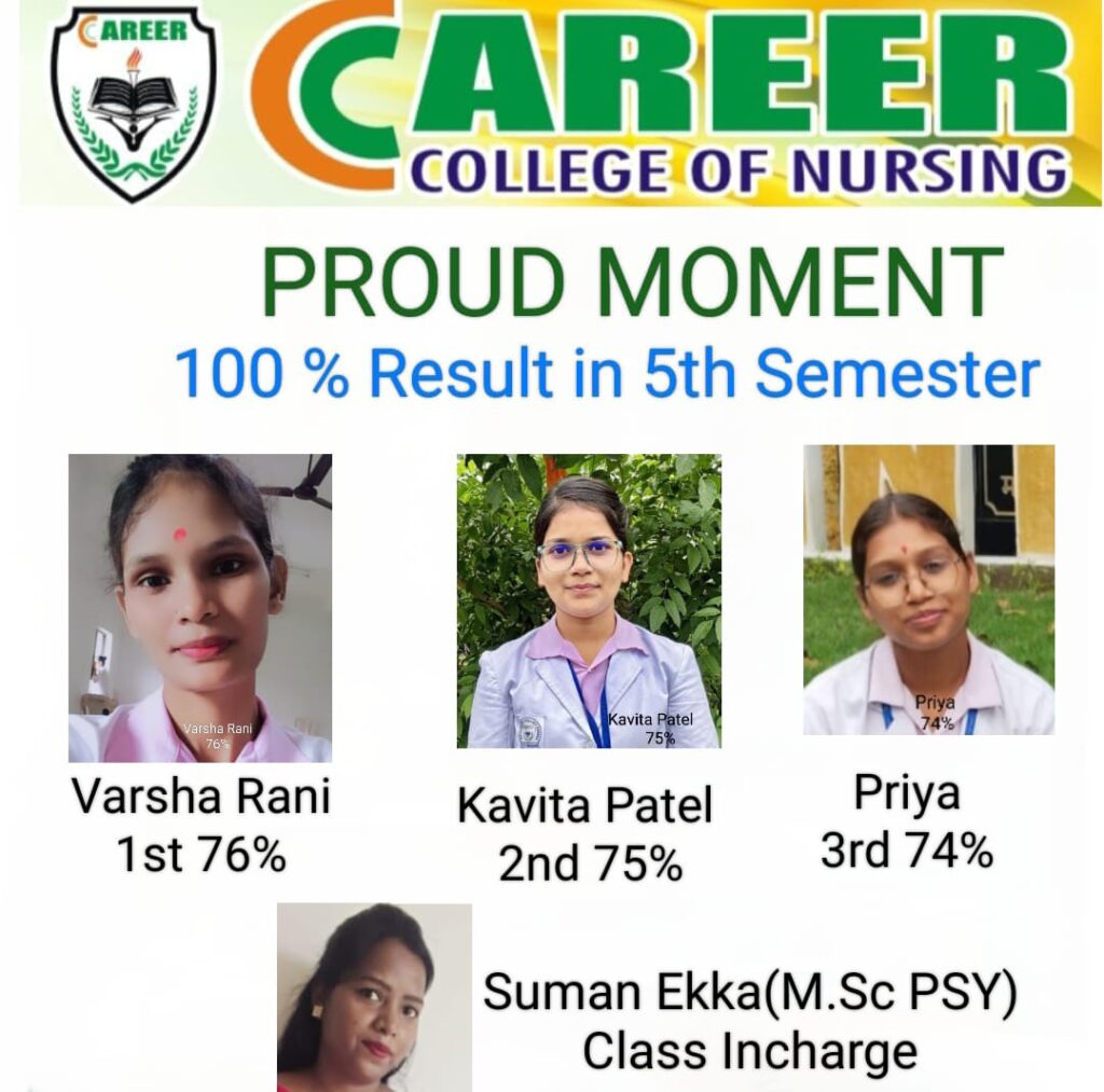5th सेमेस्टर BSc नर्सिंग 100% रिजल्ट कैरियर कॉलेज आफ नर्सिंग रायगढ़