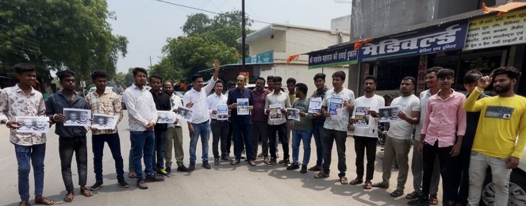 घरघोड़ा में युवा कांग्रेस का आक्रोश, मोदी-नीतीश के खिलाफ फूंका पुतला