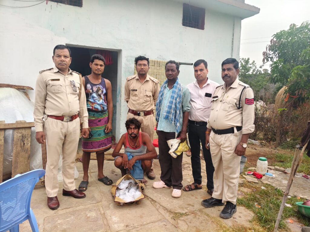 खम्हरिया में अवैध शराब पकड़ाई,14.50 लीटर कच्ची शराब और 195 किलो महुआ लाहन जब्त