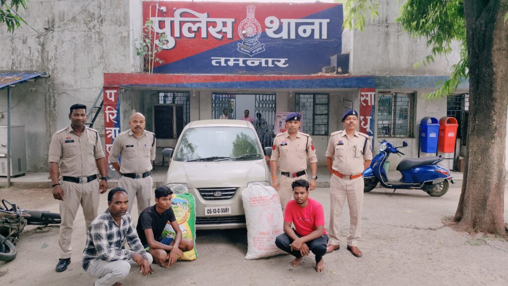रायगढ़, — एसपी श्री दिव्यांग पटेल के दिशा निर्देशन पर सीमावर्ती प्रांत ओड़िसा से गांजा की अवैध तस्करी पर पुलिस निगाह रखे हुए है । इसी क्रम में तमनार पुलिस ने मादक पदार्थों की तस्करी के विरुद्ध बड़ी कार्रवाई करते हुए ओड़िसा से गांजा ला रहे तीन तस्करों को सलिहाभांठा चौक पर घेराबंदी कर पकड़ा है। कार्रवाई में 37 किलो गांजा, एक सेंट्रो कार, तीन मोबाइल फोन और कुल मिलाकर 6.45 लाख रुपये की संपत्ति जब्त की गई है। गांजा तस्करों और सप्लायर के खिलाफ एनडीपीएस एक्ट के तहत मामला दर्ज कर गिरफ्तार 3  आरोपियों को  रिमांड पर भेजा गया है।