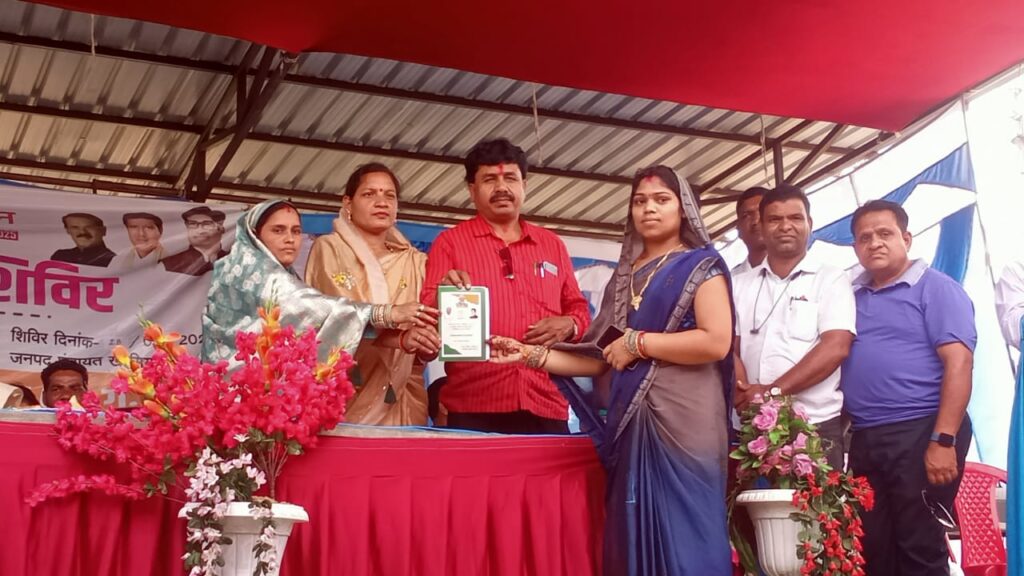 खरसिया के चपले में आयोजित शिविर में विभागीय योजनाओं की जानकारी के साथ ही मांग एवं समस्याओं से संंबंधित आवेदन लिए गए। इस दौरान सुशासन तिहार में लिए गए आवेदनों के निराकरण के संबंध में आवेदकों को जानकारी भी दी गई। मौके पर पात्र हितग्राहियों को विभागीय योजनाओं से लाभान्वित किया गया। जिसमें योगिता पटेल, भोजराम एवं संतोषी को प्रधानमंत्री आवास योजना से लाभान्वित किया गया। पदुमराम, शिवनंदन, निर्मला प्रधान एवं बंशीलाल को वय वंदना, मेमबाई डनसेना, कंचन बाई पटेल, दिलीप कुमार, कुमारी बाई एवं संतोषी बाई को आयुष्मान कार्ड तथा चितकुमारी, कोमल, गनेशी को सिकल सेल कार्ड से लाभान्वित किया गया। इसी प्रकार स्कूली बच्चों को जाति प्रमाण-पत्र भी वितरित किए गए। महिला एवं बाल विकास विभाग द्वारा गर्भवती महिलाओं की गोद भराई एवं नन्ने बच्चों का अन्नप्रासन्न करवाया गया। इसी प्रकार तमनार के सराईपाली में आयोजित शिविर में राशन कार्ड प्रदान किया गया। इस दौरान पूर्व विधायक श्रीमती सुनीति सत्यानंद राठिया, जनपद अध्यक्ष श्री जागेश्वर सिदार, डीडीसी श्री रमेश बेहरा, बंशीलाल चौधरी, जनपद उपाध्यक्ष श्रीमती गायत्री बेहरा सहित स्थानीय जनप्रतिनिधि एवं अधिकारी-कर्मचारी उपस्थित थे।