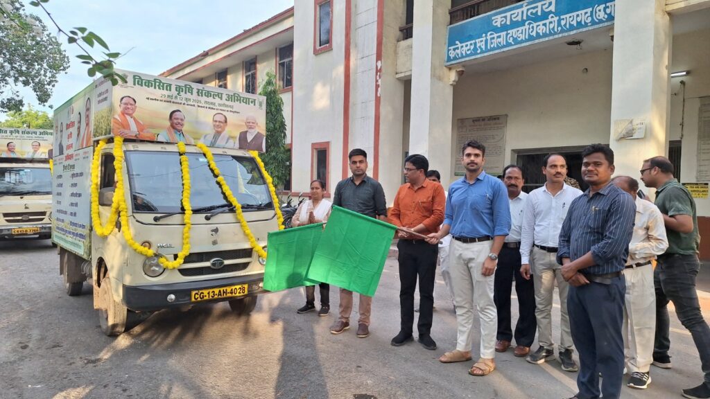 रायगढ़, विकसित कृषि संकल्प अभियान के तहत कलेक्टर श्री मयंक चतुर्वेदी ने आज कलेक्टोरेट परिसर से किसान रथ को हरी झंडी दिखाकर रवाना किया। इस अवसर पर सीईओ जिला पंचायत श्री जितेन्द्र यादव उपस्थित रहे।