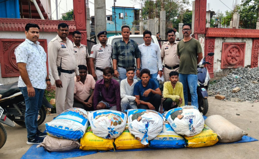 *रायगढ़, पुलिस अधीक्षक श्री दिव्यांग पटेल के दिशा निर्देशन में चलाए जा रहे अवैध शराब विरोधी अभियान के तहत जूटमिल थाना पुलिस को एक बड़ी सफलता हाथ लगी है। थाना प्रभारी निरीक्षक प्रशांत राव के नेतृत्व में ओड़िशा से रायगढ़ में महुआ शराब की आपूर्ति कर रहे गिरोह के 5 सदस्यों को धरदबोचा गया है। आरोपियों के कब्जे से 580 लीटर कच्ची महुआ शराब, एक मारुति वैन और एक स्कूटी सहित डेढ़ लाख रुपये से अधिक की संपत्ति जब्त की गई है।