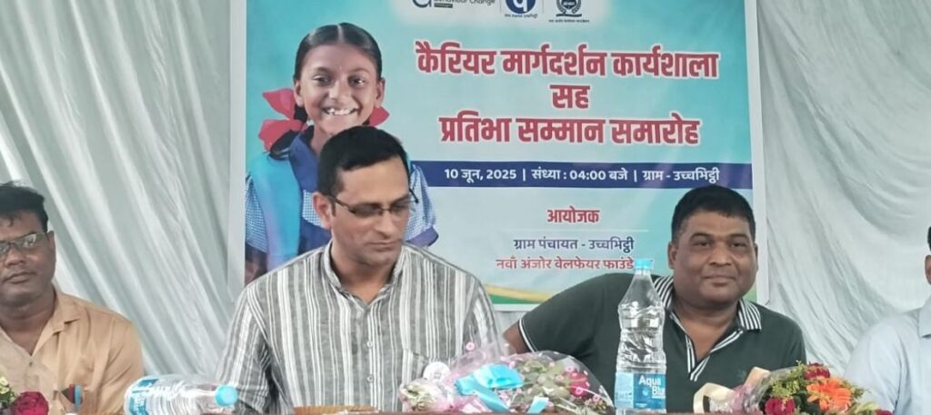 नवा अंजोर कैरियर मार्गदर्शन कार्यशाला और प्रतिभावान छात्र-छात्राओं का सम्मान और व्यवहार परिवर्तन के लिए गठबंधन कार्यक्रम ग्राम पंचायत – उच्चभिट्ठी में 10 जून को संपन्न हुआ। कार्यक्रम में रायगढ़ के प्रसिद्ध शिक्षाविद युवा और छात्रों के मार्गदर्शक रामचंद्र शर्मा ने उच्चभिट्ठी में ग्रामीण छात्र छात्राओं को कैरियर डेवलपमेंट टिप्स दिया है। उन्होंने बताया कि कड़ी मेहनत और परिश्रम से परिवार के सपने पूरे होते हैं इसीलिए छात्रों को अपने भविष्य को लेकर अधिक परिश्रम करने की जरूरत है। उन्होंने ग्रामीण छात्र-छात्राओं को बताया कि 10वीं और 12वीं की परीक्षा उत्तीर्ण करने वाले छात्र-छात्राओं को डॉक्टर इंजीनियर शिक्षक तथा अन्य प्रशासनिक सेवा में जाने के लिए कौन सा विषय लेना चाहिए।