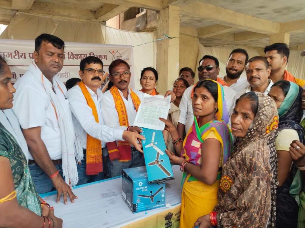 स्वामित्व पत्र के साथ सीलिंग फैन का वितरण , विस्थापितों ने मिली सुविधाओं पर संतोष जताते किया आभार