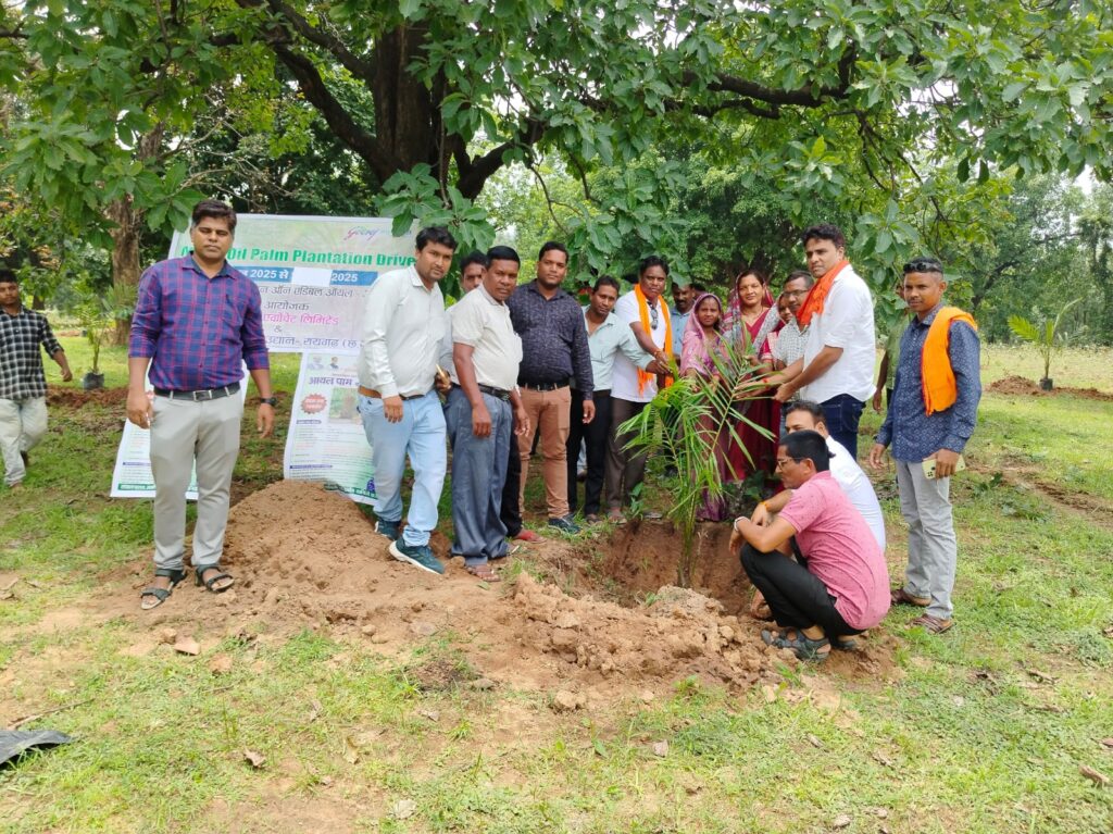 रायगढ़,/ कलेक्टर श्री मयंक चतुर्वेदी के मार्गदर्शन में जिले में किसानों की आय बढ़ाने हेतु उन्हें व्यवसायिक खेती से जोडऩे की पहल की जा रही है। इसी क्रम में खरसिया विकासखंड के ग्राम छोटे पंडरमुड़ा में तीन कृषकों ने लगभग तीन हेक्टेयर भूमि पर ऑयल पाम की खेती की शुरुआत की है। उद्यानिकी विभाग के सहयोग से श्री टीकम सिंह राठिया, श्री बलदेव राठिया एवं श्री रामायण सिंह राठिया के खेतों में पाम ऑयल के पौधों का रोपण किया गया। इस अवसर पर जनपद अध्यक्ष खरसिया श्रीमती रामकुमारी राठिया, जनपद उपाध्यक्ष श्री हितेश गबेल, श्री रविन्द्र गबेल, श्री संतोष राठिया, सरपंच श्रीमती सुनीता राठिया, वरिष्ठ कृषि विकास अधिकारी श्री एन.पी.सिदार, ग्रामीण उद्यान विस्तार अधिकारी श्री जय किशन भारद्वाज एवं श्री गजपति साहू उपस्थित रहे।