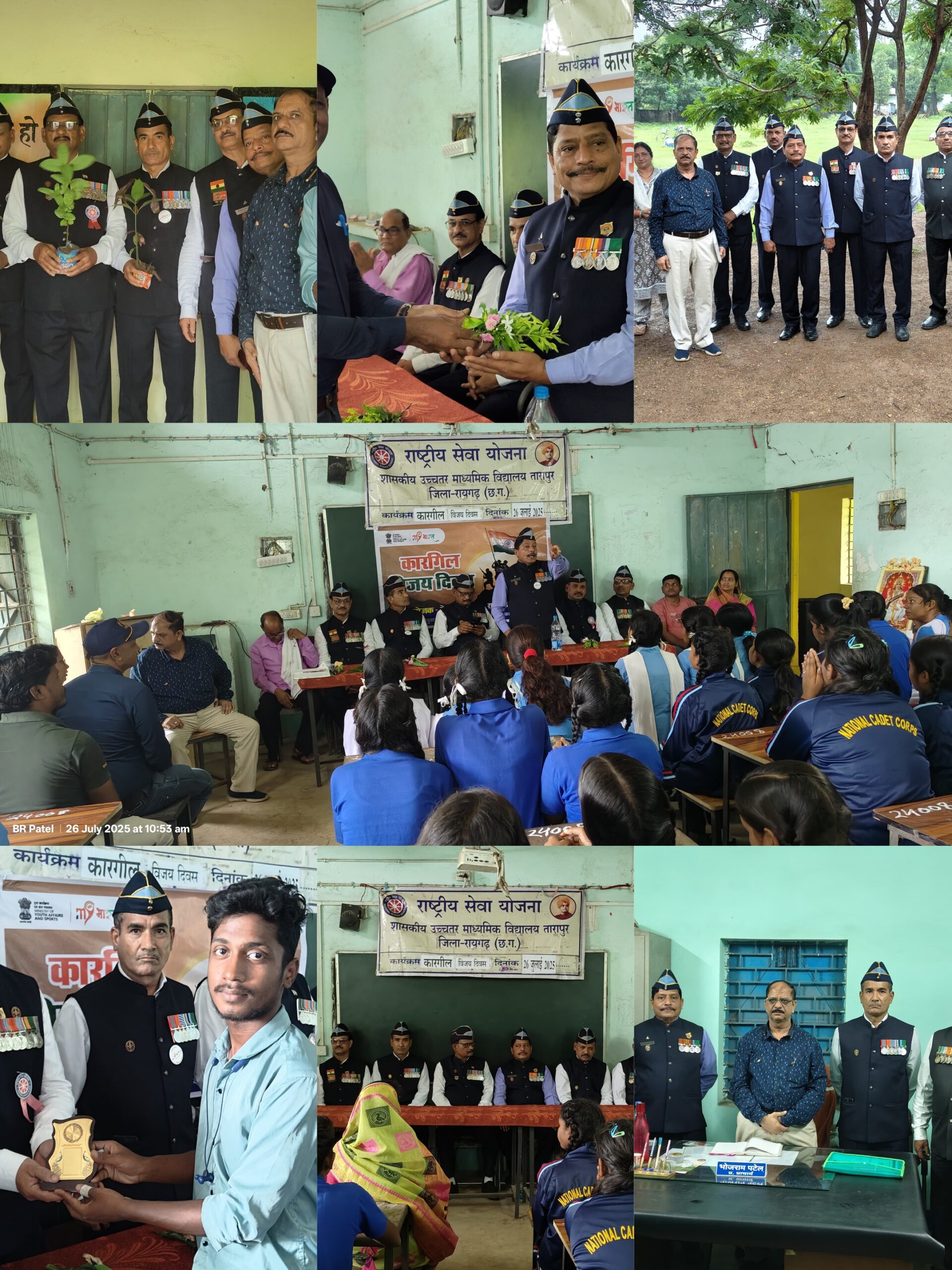 रायगढ़ । भारत सरकार युवा कल्याण एवं खेल मंत्रालय के संस्था माय भारत संगठन एवं शहीद नंदकुमार पटेल विश्वविद्यालय से संबद्ध राष्ट्रीय सेवा योजना इकाई शासकीय उच्चतर माध्यमिक विद्यालय तारापुर के संयुक्त तत्वाधान में 26 जुलाई शनिवार को जिला स्तरीय कारगिल विजय दिवस की 26वीं वर्षगांठ देश के आधा दर्जन पूर्व सैनिक सेवानिवृत्त सैन्य अधिकारियों की गरिमामय उपस्थिति में राष्ट्रीय सेवा योजना एवं एनसीसी