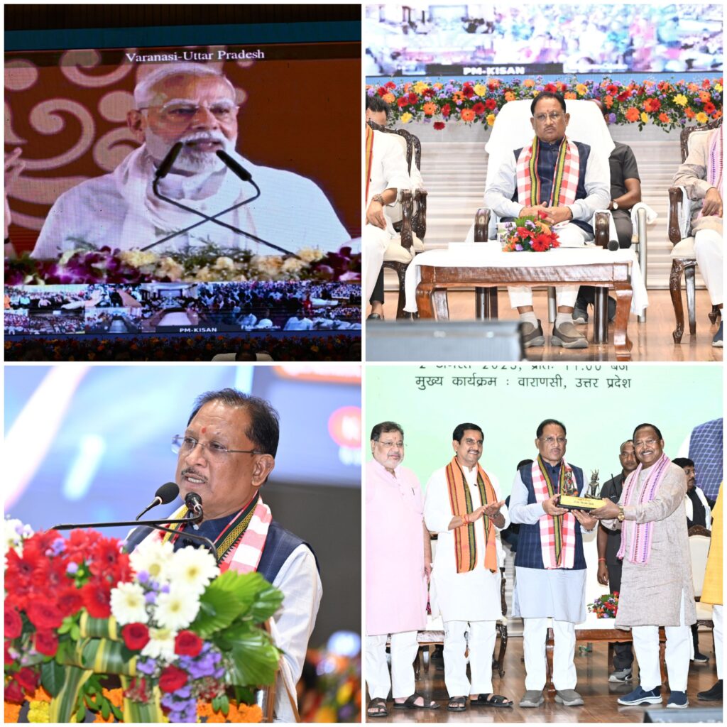 रायपुर/ सावन के पवित्र महीने में प्रधानमंत्री श्री नरेंद्र मोदी ने वाराणसी (उत्तर प्रदेश) से देशभर के 9.7 करोड़ से अधिक किसानों को पीएम किसान सम्मान निधि की 20वीं किश्त के रूप में 20500 करोड़ रुपये की राशि डीबीटी के माध्यम से सीधे उनके खातों में हस्तांतरित की। इस अवसर पर छत्तीसगढ़ के मुख्यमंत्री श्री विष्णु देव साय राजधानी रायपुर स्थित उद्यानिकी एवं वानिकी विश्वविद्यालय के सभागार से प्रदेश के किसानों के साथ वर्चुअल माध्यम से कार्यक्रम से जुड़े।