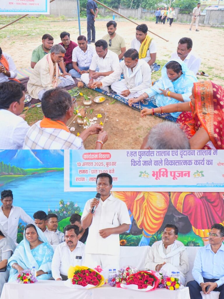 एसईसीएल रायगढ़ क्षेत्र के सीएसआर मद अंतर्गत अमृत सरोवर मिशन के तहत लात पुनर्वास छाल,वृंदावन में तालाब सौंदर्यीकरण विकास कार्य हेतु 75 लाख रुपए की राशि स्वीकृत की गई थी जिसका भूमिपूजन आज सांसद रायगढ़ क्षेत्र राधेश्याम राठिया एवं विधायक धरमजयगढ़ लालजीत सिंह राठिया के कर कमलों से संपन्न हुआ तालाब में सौंदर्यीकरण होने से क्षेत्र के लोगों को इसका लाभ मिलेगा एक लंबे समय से ग्रामीण इसकी मांग करते आ रहे थे जिसका सपना आज भूमि पूजन के साथ साकार होता नजर आया भूमि पूजन के अवसर पर जिला पंचायत सदस्य रजनी राठिया एसईसीएल के महाप्रबंधक (संचालन) के.सी.सुरेन्द्रनाथ,छाल उप- क्षेत्रिय प्रबंधक अजय कुमार चौबे, सीएसआर अधिकारी रायगढ़ क्षेत्र डॉ गजानंद,जनपद पंचायत सदस्य संतराम खूंटे,विधायक प्रतिनिधि नीलांबर सिंह राठिया,भाजपा मंडल अध्यक्ष डोल नारायण पटेल,सरपंच मालती राठिया,उपसरपंच अशोक पांडेय,जनपद पंचायत सदस्य रोहिणी पटेल,चमेली बाई राठिया सहित भारी संख्या में ग्रामीण महिला पुरुष,जनप्रतिनिधि और अधिकारी कर्मचारी उपस्थित रहें।