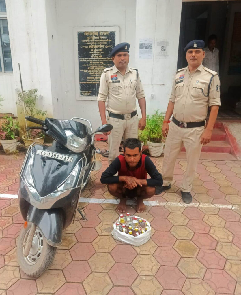 रायगढ़* । शुष्क दिवस के मद्देनजर अवैध शराब के भंडारण व बिक्री पर रोक लगाने पुलिस अधीक्षक श्री दिव्यांग पटेल द्वारा सभी थाना व चौकी प्रभारियों को सख्त निर्देश दिए गए थे। इन्हीं निर्देशों के तहत नगर पुलिस अधीक्षक श्री मयंक मिश्रा के मार्गदर्शन और थाना प्रभारी कोतवाली निरीक्षक सुखनंदन पटेल के नेतृत्व में 13 अगस्त को कोतवाली पुलिस ने कार्रवाई करते हुए अवैध शराब की बड़ी खेप जब्त की। पुलिस को सूचना मिली थी कि कोतरारोड़ की ओर से एक काले रंग की हीरो मोटरसाइकिल (क्रमांक CG 13 BA 7472) में एक व्यक्ति डिक्की में अधिक मात्रा में शराब रखकर पुरानी बस्ती ढिमरापुर की ओर जा रहा है। थाना प्रभारी के निर्देशन पर उप निरीक्षक ऐनु देवांगन के हमराह पुलिस टीम ने ढिमरापुर चौक, ईलामॉल के पास घेराबंदी कर संदिग्ध वाहन को रोक लिया। तलाशी में प्लास्टिक बोरी के अंदर 12 पाव देशी मदिरा मसाला और 20 पाव देशी मदिरा प्लेन, कुल 32 पाव शराब कीमत 2800 रुपये और 60 हजार रुपये मूल्य की मोटरसाइकिल बरामद की गई। गिरफ्तार आरोपी की पहचान सचिन कुमार पिता शशीनाथ पाण्डेय (34 वर्ष), निवासी ग्राम गायघाट, थाना ब्रम्हपुर, जिला बक्सर (बिहार) के रूप में हुई, जो वर्तमान में पुरानी बस्ती ढिमरापुर रायगढ़ में रह रहा था। आरोपी के खिलाफ थाना कोतवाली में धारा 34(2), 59(क) आबकारी एक्ट के तहत अपराध दर्ज कर कार्रवाई की गई। इस सफल कार्यवाही में निरीक्षक सुखनंदन पटेल, उप निरीक्षक ऐनु देवांगन, आरक्षक कमलेश यादव और रोशन एक्का की महत्वपूर्ण भूमिका रही।