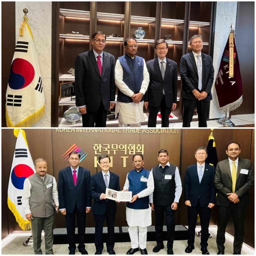 छत्तीसगढ़ के मुख्यमंत्री श्री विष्णुदेव साय ने आज सियोल में दक्षिण कोरिया के सबसे बड़े व्यापार संगठन कोरिया इंटरनेशनल ट्रेड एसोसिएशन (KITA) के चेयरमैन श्री जिन सिक युन और वाइस प्रेसिडेंट श्री किम की ह्यून से मुलाकात की। 77,000 से अधिक सदस्यों वाला यह संगठन एशिया का अग्रणी व्यापारिक मंच है। इस अवसर पर मुख्यमंत्री श्री साय ने छत्तीसगढ़ की औद्योगिक नीति 2024–30, प्राकृतिक संसाधनों और कुशल मानव संसाधन की ताकत को रेखांकित करते हुए निवेश, तकनीकी हस्तांतरण और स्किलिंग के क्षेत्र में संभावनाओं पर विस्तृत चर्चा की।