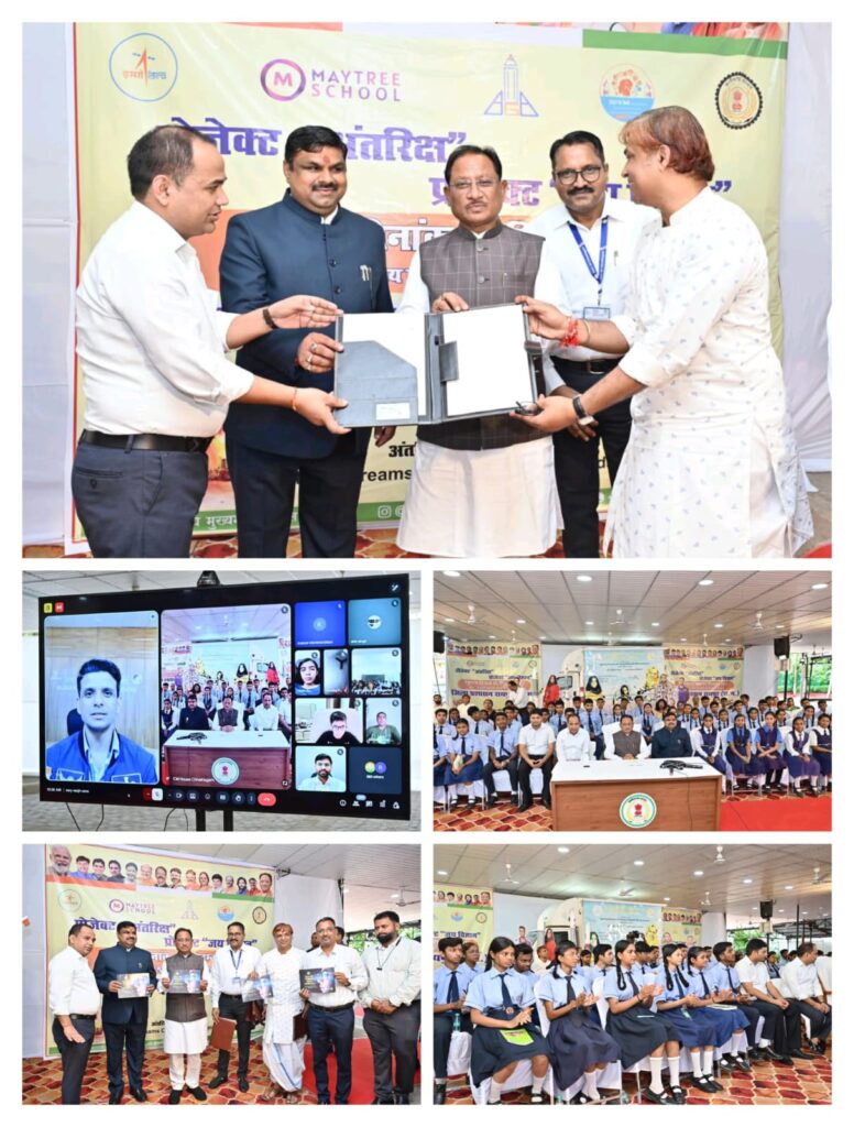 रायपुर / मुख्यमंत्री विष्णु देव साय ने आज शिक्षक दिवस के विशेष अवसर पर मुख्यमंत्री निवास परिसर से स्कूली बच्चों में अंतरिक्ष विज्ञान के प्रति जागरूकता के लिए मिशन अंतरिक्ष और प्रोजेक्ट जय विज्ञान अभियान का शुभारंभ किया। इस दौरान जिला प्रशासन रायपुर और इग्नाइटिंग ड्रीम्स ऑफ यंग माइंड फाउंडेशन तथा जिला प्रशासन रायपुर और विज्ञान भारती के मध्य दो महत्वपूर्ण समझौते हुए, जिनसे बच्चों को अंतरिक्ष से जुड़े विषयों की महत्वपूर्ण जानकारी प्राप्त होगी।