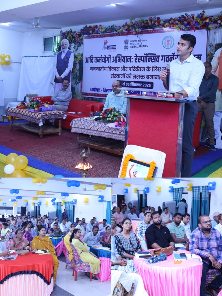 रायगढ़ – कलेक्टर श्री मयंक चतुर्वेदी जी के संरक्षकत्व एवं जिला पंचायत रायगढ़ के मुख्य कार्यकारी अधिकारी एवं अभियान के नोडल अधिकारी श्री जितेंद्र यादव जी के मार्गदर्शन एवं श्री श्रीकांत दुबे सहायक आयुक्त के निरीक्षण में जनजातीय कार्य मंत्रालय, भारत सरकार की महत्वाकांक्षी एवं ऐतिहासिक योजना ‘आदि कर्मयोगी अभियान’ का शुभारंभ 10 जुलाई 2025 को किया गया है। यह अभियान कैडर आधारित मॉडल एवं अंतर विभागीय अभिसरण पर आधारित है, जिसका मुख्य उद्देश्य उत्तरदायी शासन, प्रभावी योजना निर्माण एवं आदिवासी क्षेत्रों में अंतिम छोर तक शासकीय सेवाओं की पहुंच सुनिश्चित करना है।