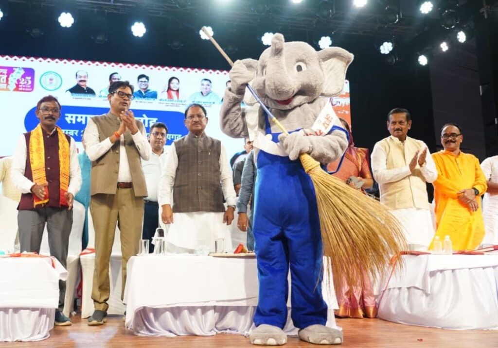 रायगढ़, 07 सितंबर 2025//छत्तीसगढ़ राज्य की रजत जयंती वर्षगांठ के अवसर पर रायगढ़ में आयोजित चक्रधर समारोह के अंतिम दिवस प्रदेश के मुख्यमंत्री श्री विष्णु देव साय ने नगर निगम रायगढ़ में अभिनव पहल स्वच्छता जागरूकता के शुभंकर “अप्पू राजा” लोकार्पित किया। इस पहल का उद्देश्य “सुग्घर रायगढ़, आरुग रायगढ़” की परिकल्पना को मूर्त रूप देना और शहर को स्वच्छ, स्वस्थ एवं आकर्षक स्वरूप प्रदान करना है। इस अवसर पर उप मुख्यमंत्री श्री अरुण साव, वित्त मंत्री श्री ओ.पी. चौधरी, महिला एवं बाल विकास मंत्री श्रीमती लक्ष्मी राजवाड़े, राज्यसभा सांसद श्री देवेंद्र प्रताप सिंह, लोकसभा सांसद श्री राधेश्याम राठिया, महापौर श्री जीवर्धन चौहान सहित जनप्रतिनिधि, अधिकारी और नागरिकगण उपस्थित थे।