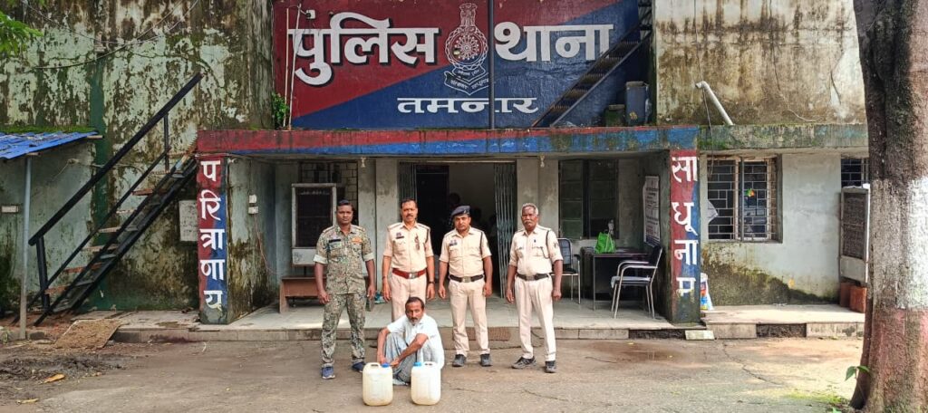 तमनार पुलिस की दबिश, ग्राम कसडोल से 20 लीटर अवैध महुआ शराब जब्त, आरोपी गिरफ्तार