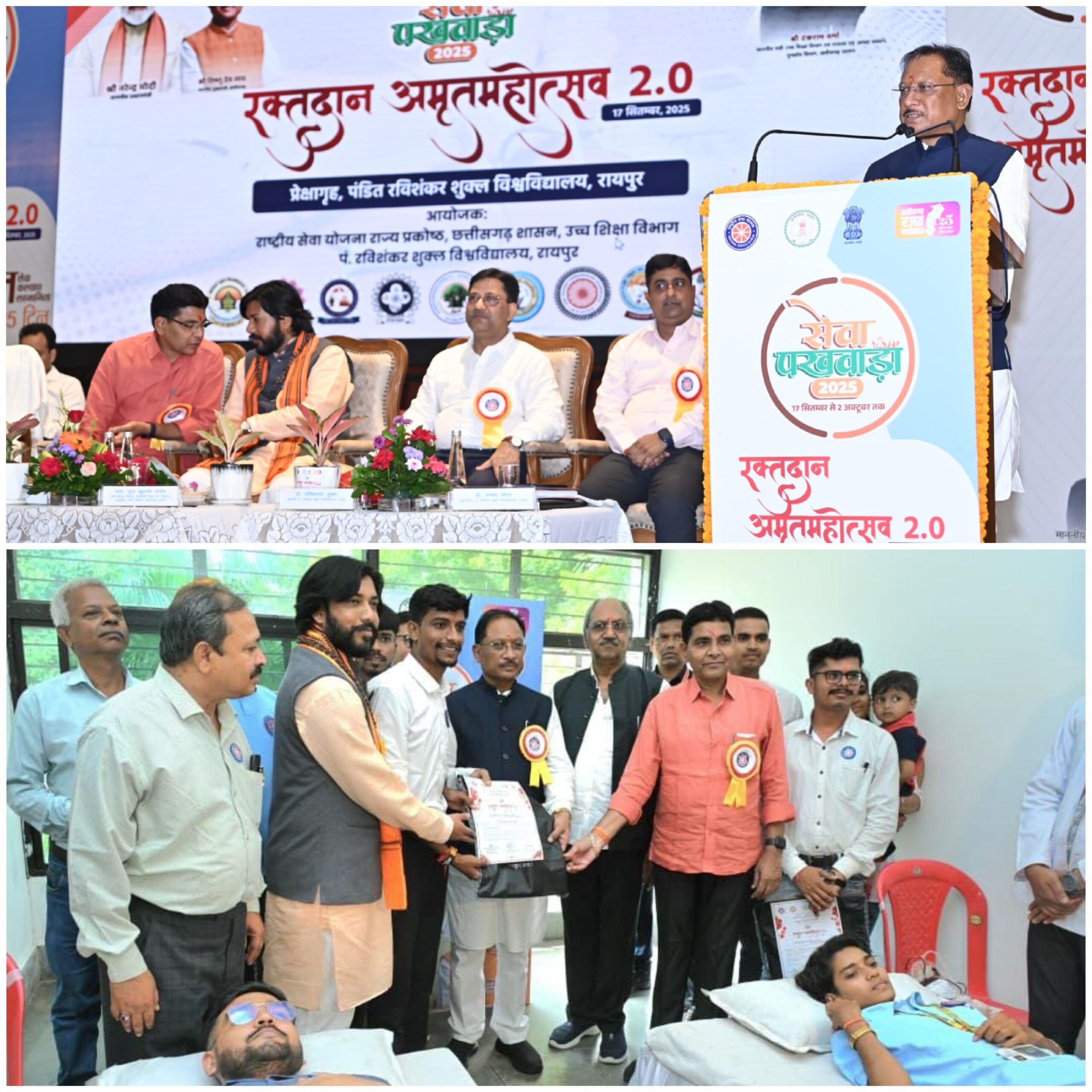 इस अवसर पर राष्ट्रीय सेवा योजना राज्य प्रकोष्ठ, उच्च शिक्षा विभाग एवं पं. रविशंकर शुक्ल विश्वविद्यालय द्वारा सेवा पखवाड़े का शुभारंभ किया गया। 17 सितम्बर से 2 अक्टूबर तक चलने वाले इस अभियान में प्रदेशभर के महाविद्यालयों में रक्तदान सहित विविध गतिविधियाँ आयोजित की जाएंगी।
