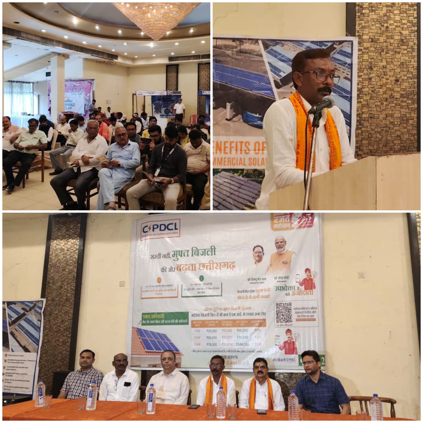 कार्यक्रम में विद्युत विभाग रायगढ़ क्षेत्र के मुख्य अभियंता श्री मनीष तनेजा ने विस्तारपूर्वक योजना की जानकारी दी और लोगों से अधिक से अधिक संख्या में इस योजना का लाभ लेने तथा दूसरों को भी प्रेरित करने का आह्वान किया। लाभार्थियों ने भी अपने अनुभव साझा किए। श्री श्लोक चौधरी ने बताया कि सौर ऊर्जा अपनाने के बाद उनका मासिक बिजली बिल 70 हजार रुपये से घटकर मात्र 15 से 20 हजार रुपये रह गया है। इसी तरह श्री राजेंद्र चौरसिया, श्री विकास पटेल, श्री बंटी चोपड़ा, श्री नरेंद्र पटेल एवं श्री राजेश भारद्वाज ने भी अपने अनुभव साझा करते हुए बताया कि सोलर प्लांट लगाने से उनका बिजली बिल लगभग 80 प्रतिशत तक कम हो गया है। उन्होंने प्रधानमंत्री एवं मुख्यमंत्री का आभार जताया। इस अवसर पर विद्युत विभाग के अधीक्षण अभियंता श्री गुंजन शर्मा, कार्यपालन अभियंता श्री राम कुमार राव, श्री फतेह राम नाग, श्री नरेंद्र नायक सहित विभिन्न बैंकों के प्रतिनिधि एवं सोलर वेंडर्स-श्री अभिनव शर्मा, श्री मयंक मिश्रा, श्री आनंद शर्मा, श्री विकास गुप्ता, श्री अनिल मालाकार, श्री नरेश पटेल और श्री नटवर जैन उपस्थित रहे। कार्यक्रम में बड़ी संख्या में आमजन ने भागीदारी कर योजना की जानकारी प्राप्त की।