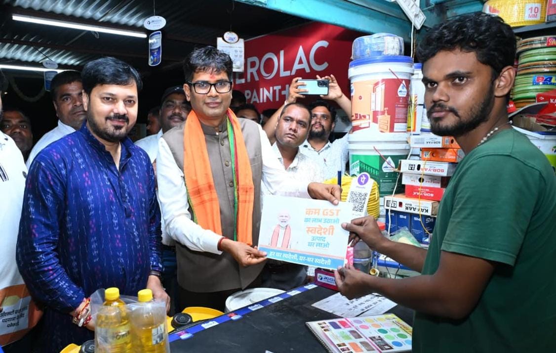 रायपुर / छत्तीसगढ़ में जीएसटी दरों में कटौती का लाभ सीधे जनता तक पहुँचे, इसके लिए राज्य सरकार ने विशेष अभियान शुरू किया है। वित्त मंत्री श्री ओ. पी. चौधरी ने आज राजधानी के विभिन्न बाजारों का दौरा कर दुकानदारों और उपभोक्ताओं से संवाद किया तथा सुधारों का असर ज़मीनी स्तर पर सुनिश्चित करने की बात कही। इस अवसर पर विधायक अनुज शर्मा भी उपस्थित थे।