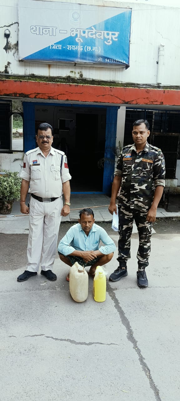 *रायगढ़, । पुलिस अधीक्षक श्री दिव्यांग पटेल के दिशा निर्देशन पर भूपदेवपुर पुलिस ने ग्रामीणों और महिला समूह के साथ ग्राम बिंजकोट में अवैध शराब कारोबार पर करारी कार्रवाई की है। शनिवार 27 सितंबर को थाना प्रभारी उप निरीक्षक संजय नाग को ग्राम भ्रमण के दौरान ग्रामीणों और महिला समूह की सदस्यों से सूचना मिली कि ग्राम बिंजकोट निवासी शीतल कुम्हार लगातार समझाइश और बैठकों के बावजूद अपने घर में महुआ शराब बनाकर बिक्री कर रहा है। सूचना पर त्वरित कार्रवाई करते हुए पुलिस ने सरपंच, उप सरपंच और राधे-राधे महिला समूह की सदस्यों के साथ आरोपी के घर दबिश दी।