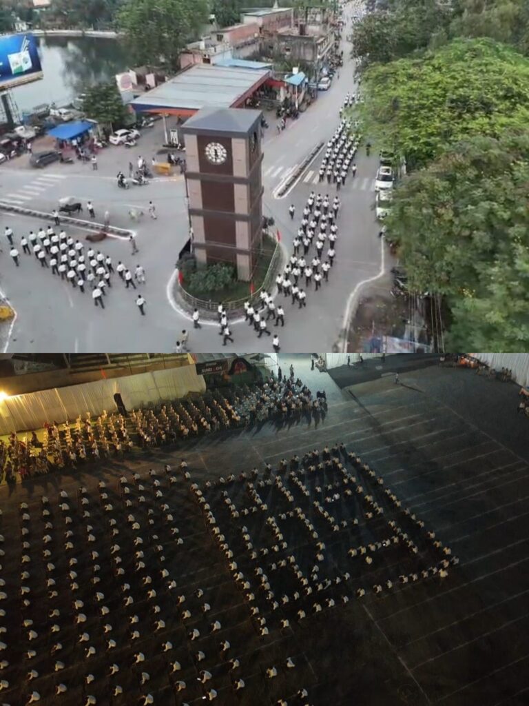 राष्ट्रीय स्वयंसेवक द्वारा शताब्दी वर्ष के शुभारंभ के अंतर्गत शताब्दी शंखनाद कार्यक्रम में हुआ पथ संचलन ।