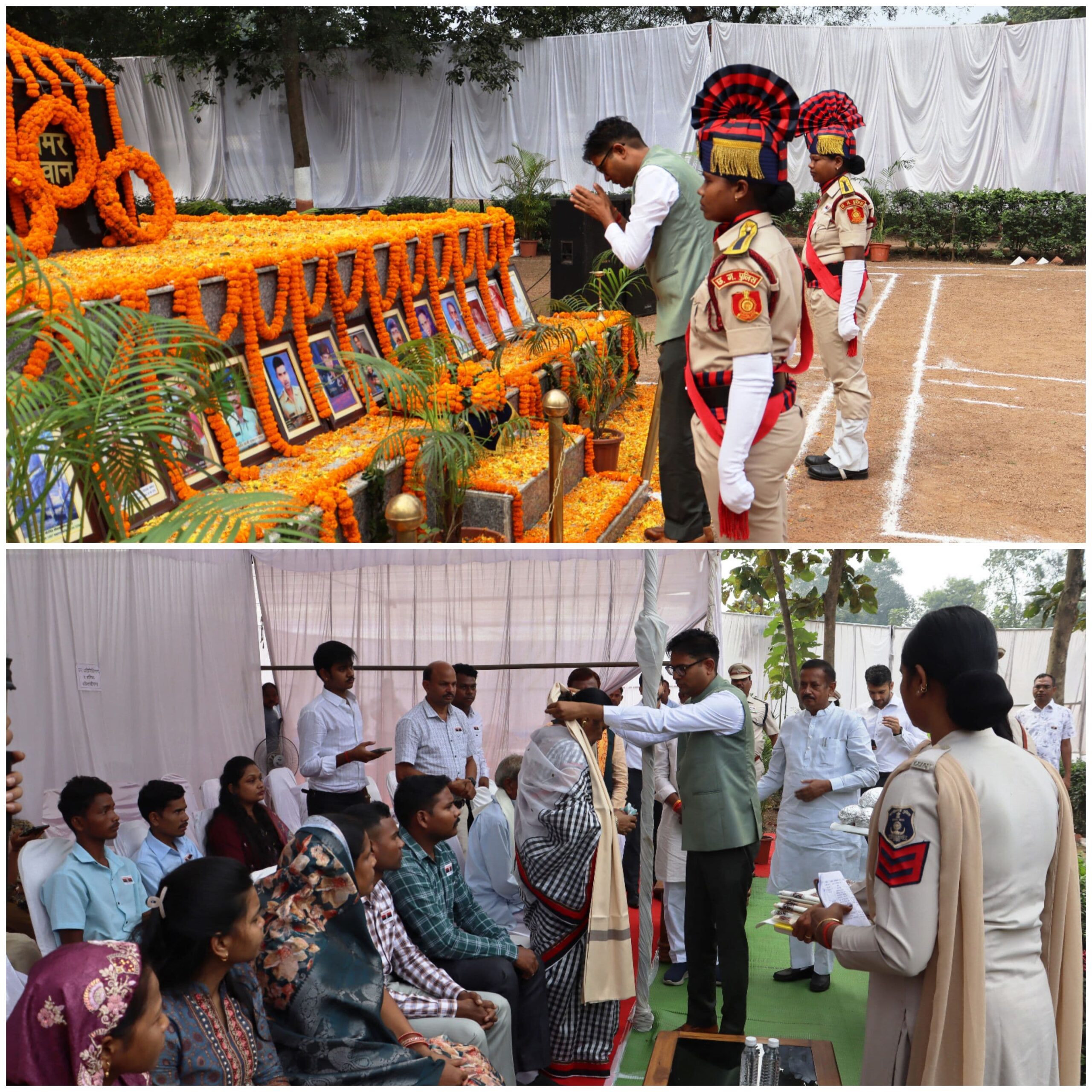इस अवसर पर कलेक्टर श्री मयंक चतुर्वेदी, डीएफओ श्री अरविंद पी.एम., सीईओ जिला पंचायत श्री अभिजीत बबन पठारे, सेनानी 6वीं वाहिनी श्रीमती निवेदिता पॉल,सीएसपी मयंक मिश्रा, उप सेनानी श्री बृजेश तिवारी तथा शहीदों के परिजन एवं बड़ी संख्या में पुलिसकर्मी उपस्थित रहे। सभी अतिथियों एवं अधिकारियों ने शहीद स्मारक पर पुष्पचक्र अर्पित कर वीर पुलिस जवानों को श्रद्धांजलि अर्पित की।