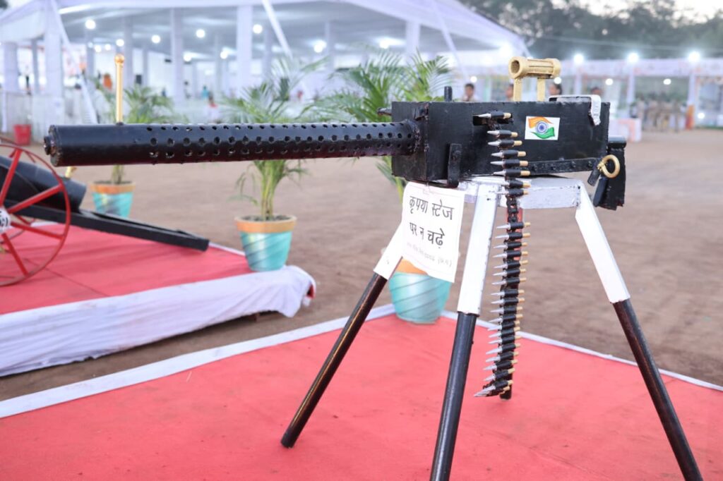 रायगढ़। मिनी स्टेडियम में चल रहे राज्य उत्सव में शहर के लोगों को इस बार कुछ अनोखा देखने को मिला। निगम कमिश्नर श्री बृजेश सिंह क्षत्रिय के निर्देश पर निगम की टीम द्वारा कबाड़ सामग्री से जुगाड़ कर तैयार की गई। एके-203 मशीन गन, तोप का मॉडल और ई-रिक्शा लोगों के बीच आकर्षण का केंद्र बना है। इन अनोखे मॉडलों ने दर्शकों का ध्यान खूब खींचा और कार्यक्रम में मौजूद हर उम्र के लोग इनके साथ तस्वीरें खिंचवाते नजर आए।
