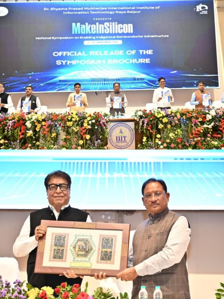 रायपुर, / मुख्यमंत्री श्री विष्णु देव साय ने आज डॉ. श्यामा प्रसाद मुखर्जी अंतरराष्ट्रीय सूचना प्रौद्योगिकी संस्थान (IIIT) नवा रायपुर के 10वें स्थापना दिवस के अवसर पर आयोजित दो दिवसीय ‘मेक इन सिलिकॉन’ संगोष्ठी का शुभारंभ किया। इस अवसर पर मुख्यमंत्री ने कार्यक्रम को संबोधित करते हुए कहा कि यह आयोजन भारत को सेमीकंडक्टर निर्माण और तकनीकी आत्मनिर्भरता की दिशा में अग्रसर करने वाला एक महत्वपूर्ण कदम है।