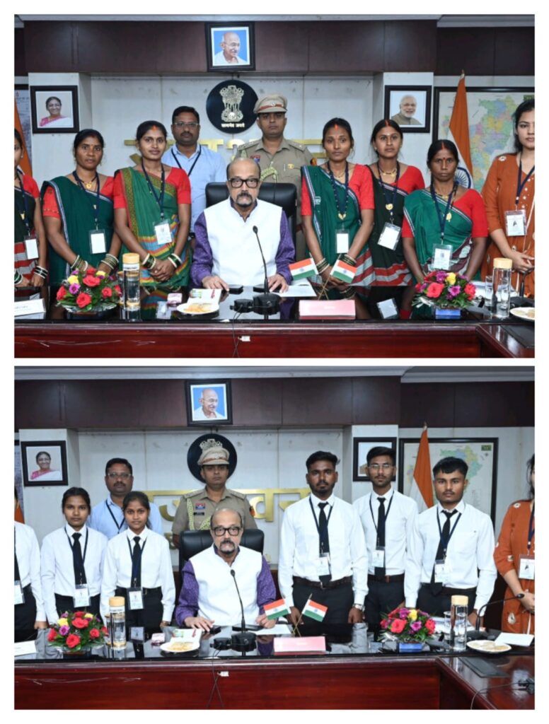 रायपुर / राज्यपाल रमेन डेका ने आज यहां राजभवन में खैरगढ़-छुईखदान-गण्डई जिले के गोद ग्राम-सोनपुरी के उत्कृष्ट कार्य करने वाले विद्यार्थियों एवं लखपति दीदियों को सम्मानित किया। राज्यपाल ने उन्हें अपने हाथों से प्रमाण पत्र दिया। श्री डेका ने इस अवसर पर मुख्यमंत्री कौशल विकास योजना के अंतर्गत विभिन्न कौशल क्षेत्रों में प्रशिक्षण ले रहे विद्यार्थियों से बातचीत कर उन्हें अच्छे से अध्ययन करने और स्किल सीख कर आगे बढ़ने की शुभकामनाएं दी। उन्होंने लखपति दीदियों से चर्चा कर उनके द्वारा किये जा रहे कार्यों की जानकारी ली। लखपति दीदियों ने जैविक खेती, ड्रोन के माध्यम से किये जा रहे कार्यो की जानकारी दी।