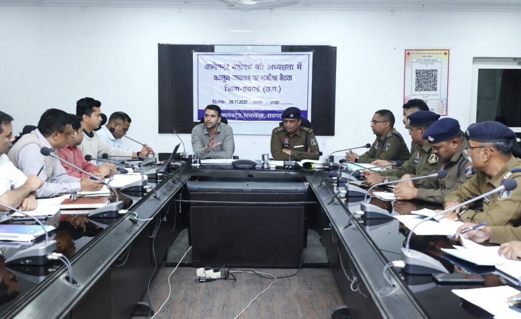 रायगढ़, 28 नवंबर 2025। कलेक्टर एवं जिला दंडाधिकारी श्री मयंक चतुर्वेदी की अध्यक्षता में आज शुक्रवार को जिला कार्यालय सभाकक्ष में जिले की कानून एवं सुरक्षा व्यवस्था से जुड़े सभी महत्वपूर्ण बिंदुओं पर विस्तृत समीक्षा बैठक आयोजित की गई।
