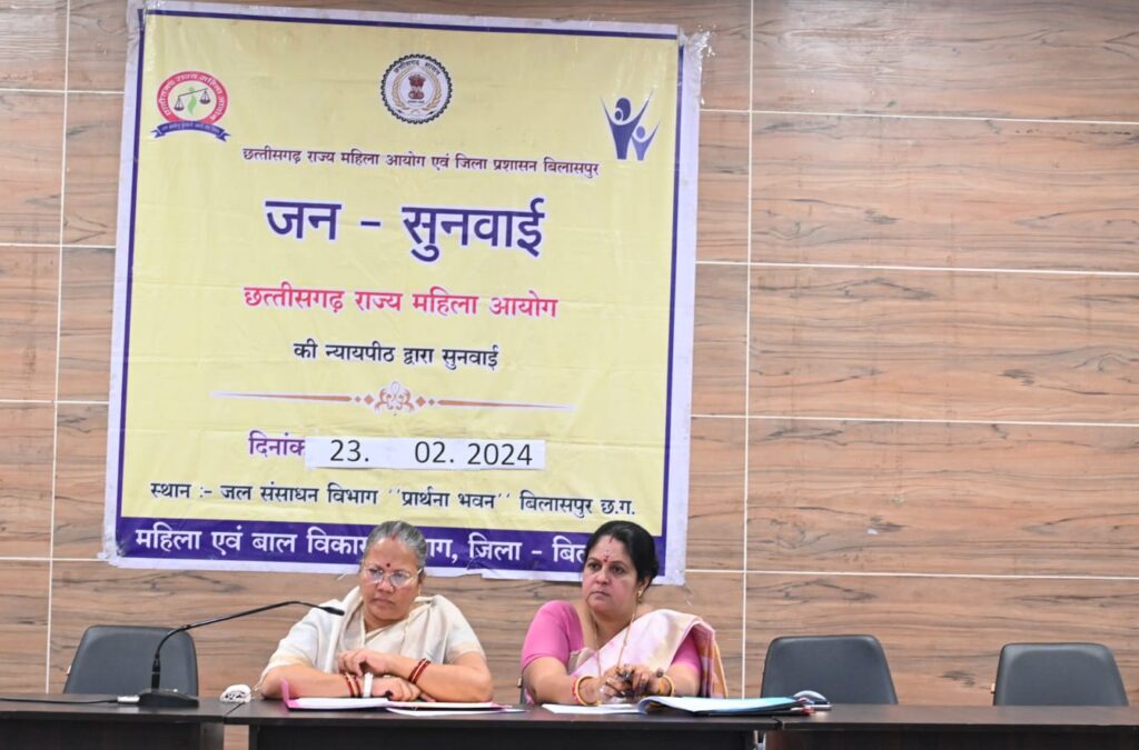 दोनो पक्षों में सहमति बनी अनावेदक जमीन का मूल दस्तावेज देगा, आवेदिका चार लाख रूपये वापस देगी बिलासपुर 23 फरवरी 2024/छत्तीसगढ़ राज्य महिला आयोग की अध्यक्ष डॉ. किरणमयी नायक एवं डॉ. अर्चना उपध्याय सदस्य द्वारा आज ‘‘प्रार्थना भवन’’ जल संसाधन विभाग बिलासपुर में महिला उत्पीडन से संबंधित प्रकरणों पर सुनवाई की। आयोग की अध्यक्ष डॉ किरणमयी नायक की अध्यक्षता में आज 239 वीं व जिला स्तर पर 15 वीं सुनवाई हुई। बिलासपुर में आयोजित जनसुनवाई में आज कुल 45 प्रकरण में सुनवाई की गई।
