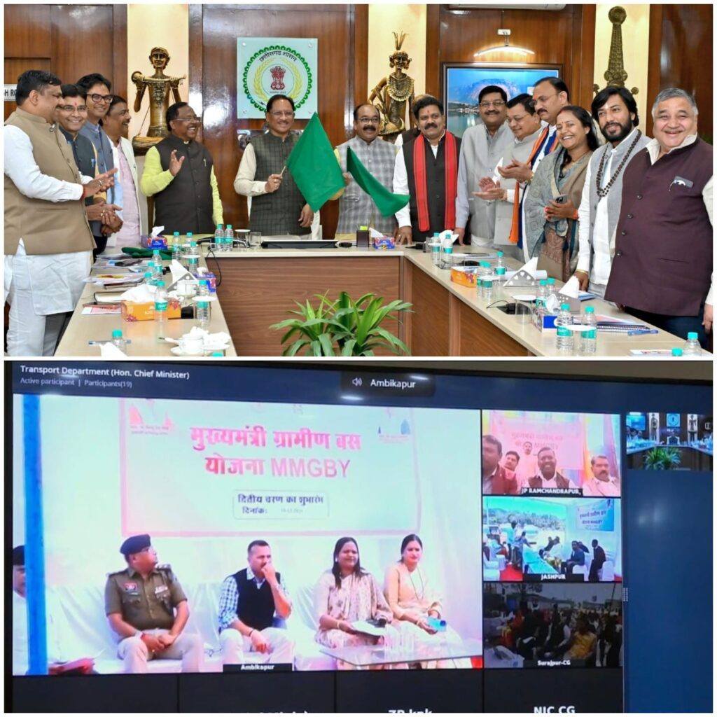 मुख्यमंत्री श्री विष्णु देव साय ने राजधानी रायपुर स्थित मुख्यमंत्री निवास कार्यालय से योजना के द्वितीय चरण का औपचारिक शुभारंभ किया तथा वर्चुअली हरी झंडी दिखाकर बसों को रवाना किया।