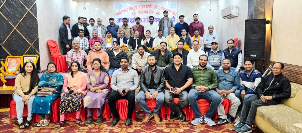 रायगढ़,(15 दिसंबर) 14 दिसंबर को छत्तीसगढ़ स्टेट पॉवर डिस्ट्रीब्यूशन कंपनी रायगढ़ क्षेत्र द्वारा बिजली विभाग के अधिकारियों का क्षेत्रीय कार्यकारिणी का चुनाव होटल श्री साईं श्रद्धा में सफलता पूर्वक संपन्न कराया गया। इस चुनाव में प्रांतीय अध्यक्ष अभियंता श्रीकांत बडगैय्या मुख्य अतिथि के रूप में शामिल हुए तथा कार्यक्रम की अध्यक्षता प्रांतीय सचिव अभियंता दीपक निकुंज ने किया चुनाव अधिकारी तथा सहायक चुनाव अधिकारी की भूमिका क्रमशः अभियंता प्रांतीय उपाध्यक्ष अविनाश दुबे तथा अभियंता संगठन सचिव राजेंद्र गिरी गोस्वामी ने निभाई । बिजली विभाग रायगढ़ रीजन अंतर्गत रायगढ़, सारंगढ़ और जांजगीर चांपा जिले के लगभग 50 से अधिक सहायक अभियंता तथा कनिष्ठ अभियंता इस कार्यक्रम में शामिल हुए।