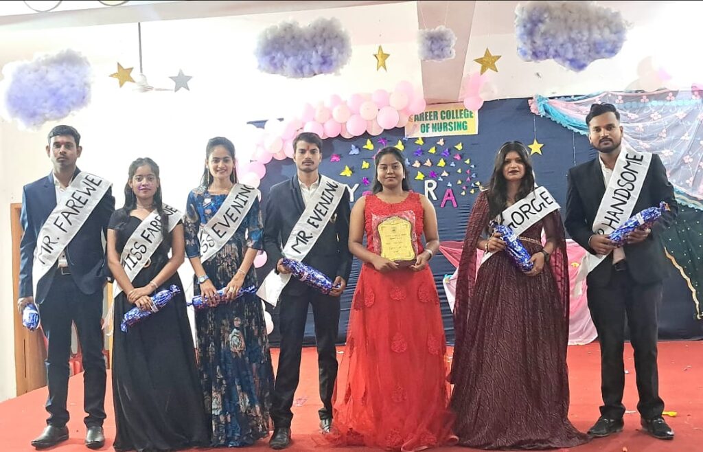कार्यक्रम के अंत में मिस फेयरवेल भारती राठिया, मिस्टर फेयरवेल हेमंत साहू, मिस्टर इवनिंग किशन पटेल, मिस इवनिंग अवंतिका पैकरा, मिस गौजूनियन राखी ड1नसेना तथा मिस्टर हैंडसम शुभम साहू को नवाजा गया | मुकेश अग्रवाल (डायरेक्टर ) कैरियर एडूकोम एकैडमी रायपुर ने विभिन्न उपाधि से नवाजे गए विद्यार्थियों को बधाई देते हुए उज्जवल भविष्य की कामना किये | उक्त कार्यक्रम का सफल संचालन तृतीय वर्ष की विद्यार्थियों के द्वारा किया गया | कार्यक्रम को दुर्गेश्वरी राठिया शिक्षिका के प्रभावी संचालन से संचालित किए गए | इस अवसर पर श्यामलाल श्रीवास ,कदंब त्रिपाठी, दिव्या मित्रा ईश्वर नाग, शंभू खम्हारी, प्रवीण साहू पुष्पा, ममता ,सुनीता, उर्वशी, सुनंदा, शिल्पा, तुषार ,प्रिंस सभी स्टाफ तथा समस्त विद्यार्थियों की उपस्थिति में संपन्न हुए |