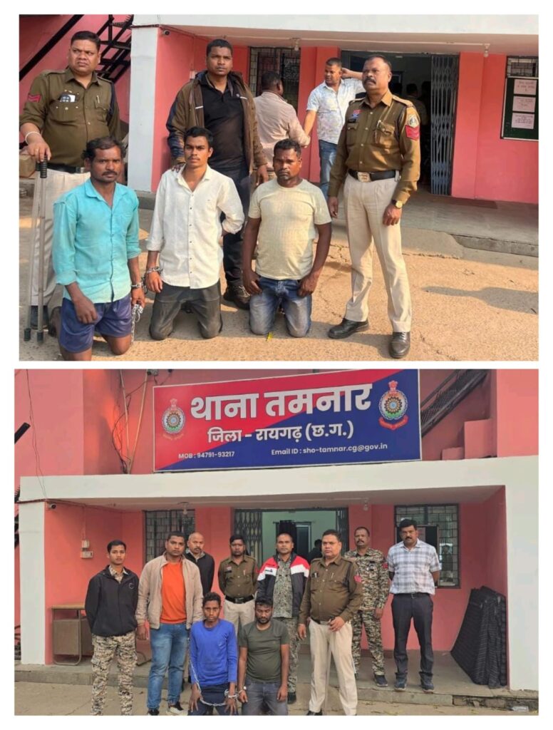 रायगढ़, । रायगढ़ जिले के तमनार थाना क्षेत्र अंतर्गत सीएचपी चौक, लिब्रा में धरना-प्रदर्शन के दौरान हुई हिंसक घटनाओं को लेकर जिला प्रशासन और पुलिस ने सख्त रुख अपनाया लिया है। महिला पुलिसकर्मी के साथ मारपीट, बदसलूकी, अमानवीय, निंदनीय व्यवहार, कपड़ा फाड़ने और अभद्र व्यवहार एवं लूट की गंभीर घटना में शामिल पांच आरोपियों को रायगढ़ पुलिस ने गिरफ्तार कर लिया है, जबकि दो अन्य फरार आरोपियों की पहचान कर ली गई है, जिनकी गिरफ्तारी के लिए लगातार गहन पतासाजी की जा रही है।
