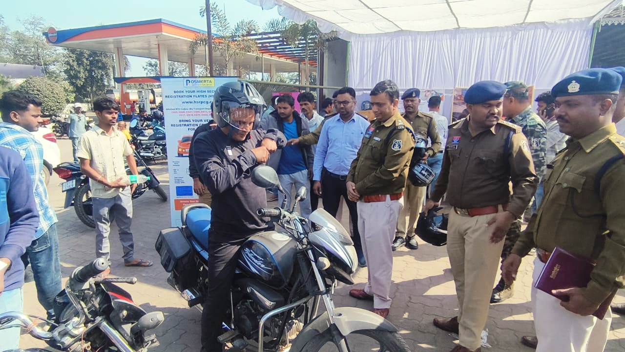 कार्यक्रम में पुलिस अधीक्षक श्री दिव्यांग पटेल विशेष रूप से उपस्थित रहे। उन्होंने बिना हेलमेट वाहन चला रहे चालकों को हेलमेट वितरित करते हुए भविष्य में हमेशा हेलमेट पहनकर वाहन चलाने तथा यातायात नियमों का सख्ती से पालन करने की अपील की।