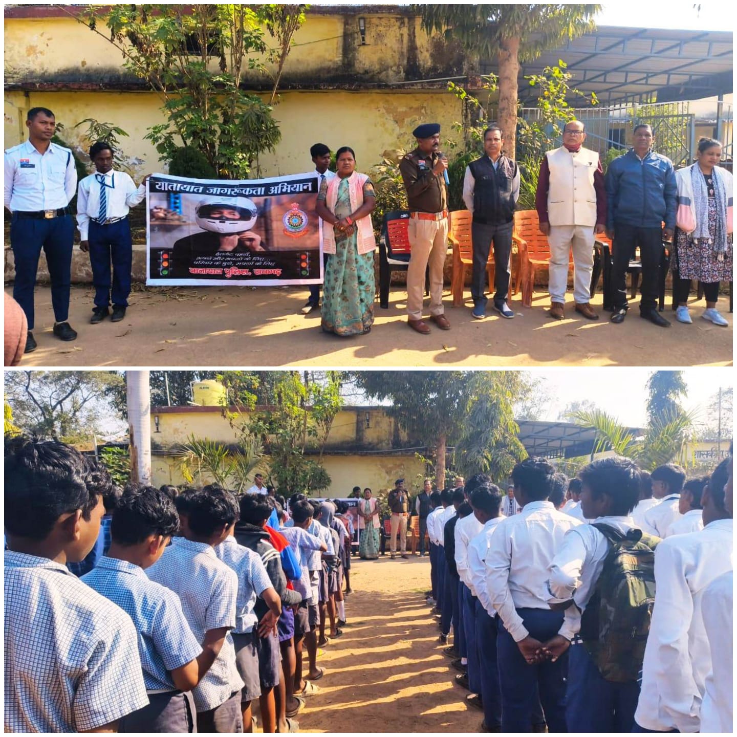 वहीं शासकीय हायर सेकेंडरी स्कूल पुसौर में थाना यातायात के सहायक उप निरीक्षक प्रेम साय भगत ने छात्र-छात्राओं को सुरक्षित यातायात के महत्व की जानकारी दी और अपील की कि वे स्वयं नियमों का पालन करें तथा अपने अभिभावकों को भी यातायात नियमों के प्रति जागरूक करें। कार्यक्रम के माध्यम से छात्रों में सड़क सुरक्षा, महिला सुरक्षा और साइबर सतर्कता को लेकर सकारात्मक संदेश दिया गया।