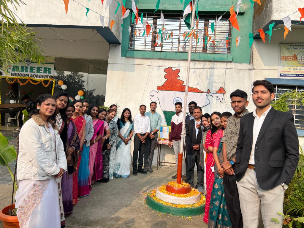 रायगढ़ – वंदे मातरम वंदे मातरम सुजलाम सुफलाम मलयज शीतलाम गगनचुंबी राष्ट्रगीत के साथ शुरू हुए 26 जनवरी को प्रातः काल में कैरियर ग्रुप्स ऑफ कॉलेजेस रायगढ़ के उमंग एवं उत्साह से भरे हुए प्रतिभाशाली विद्यार्थियों ने राष्ट्रीय पर्व गणतंत्र दिवस को भव्य रूप से आयोजित किया । कैरियर एड़ूकॉम एकेडमी मुख्यालय रायपुर से श्री मुकेश अग्रवाल सर [डायरेक्टर ] ने पूर्व संध्या पर ग्रुप्स के सभी सदस्यों और विद्यार्थियों को अपना सारगर्भित शुभकामना संदेश प्रेषित किए। वही कॉलेज परिसर में देश की आन बान शान तिरंगे झंडे की ध्वजतोलन के लिए श्रीमती कदंब त्रिपाठी मेम प्राचार्य [जीएनएम] की उपस्थिती में व स्टूडेंट्स ने मार्चपास्ट करते हुए सलामी दी गई । तत्पश्चात राष्ट्रगान गाया गया जिसमें छात्र -छात्राओं ने एक स्वर और लय में सजाए रखा । कैरियर ग्रुप्स ऑफ कॉलेजेस के पदाधिकारियों के द्वारा पावन पर्व गणतंत्र दिवस के विषय पर अपना- अपना विचार प्रस्तुत किए गए । इस अवसर को और रौनक व रोचक बनाने के स्टूडेंट्स के लिए लघु गेम रखे गए थे जिसमें छात्र- छात्राओं ने खूब मनोरंजन किए ।अंत में सभी को मिष्ठान वितरित किया गया। कार्यक्रम को सफल बनाने में सभी स्टॉफ और विद्यार्थियों का योगदान रहा।