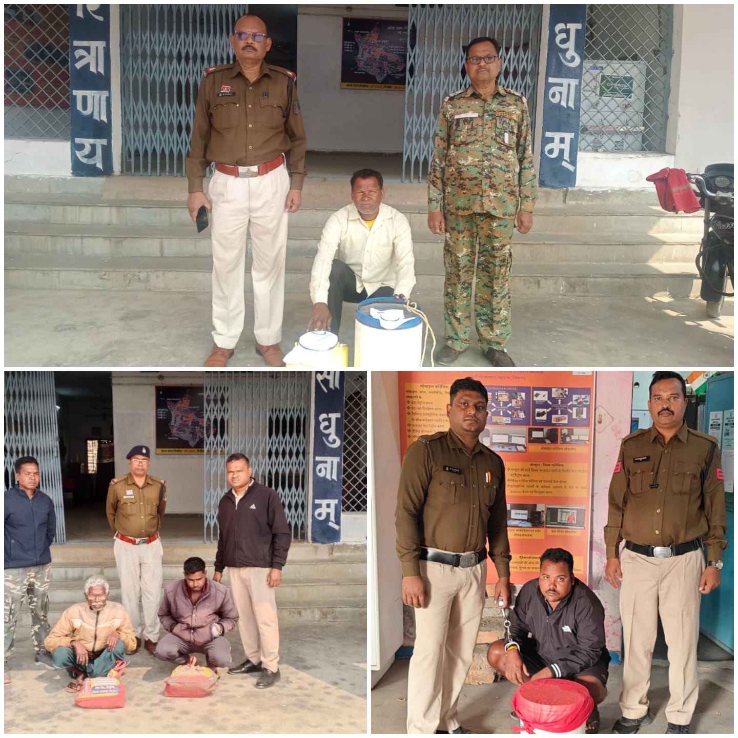 वहीं अवैध शराब के विरुद्ध कार्रवाई करते हुए लैलूंगा पुलिस ने मुखबिर सूचना पर सिहारधार निवासी सकीरतन यादव पिता पुस्तम यादव उम्र 42 वर्ष को पाकरगांव जंगल रोड के पास बिना नंबर प्लेटिना मोटरसाइकिल में कच्ची महुआ शराब बिक्री हेतु प्रतीक्षा करते हुए पकड़ा। आरोपी के कब्जे से 45 लीटर हाथ भट्ठी की बनी कच्ची महुआ शराब कीमती लगभग 4,500 रुपये एवं मोटरसाइकिल जब्त की गई। आरोपी के विरुद्ध आबकारी एक्ट की धारा 34(2), 59(क) के तहत कार्यवाही की गई है।