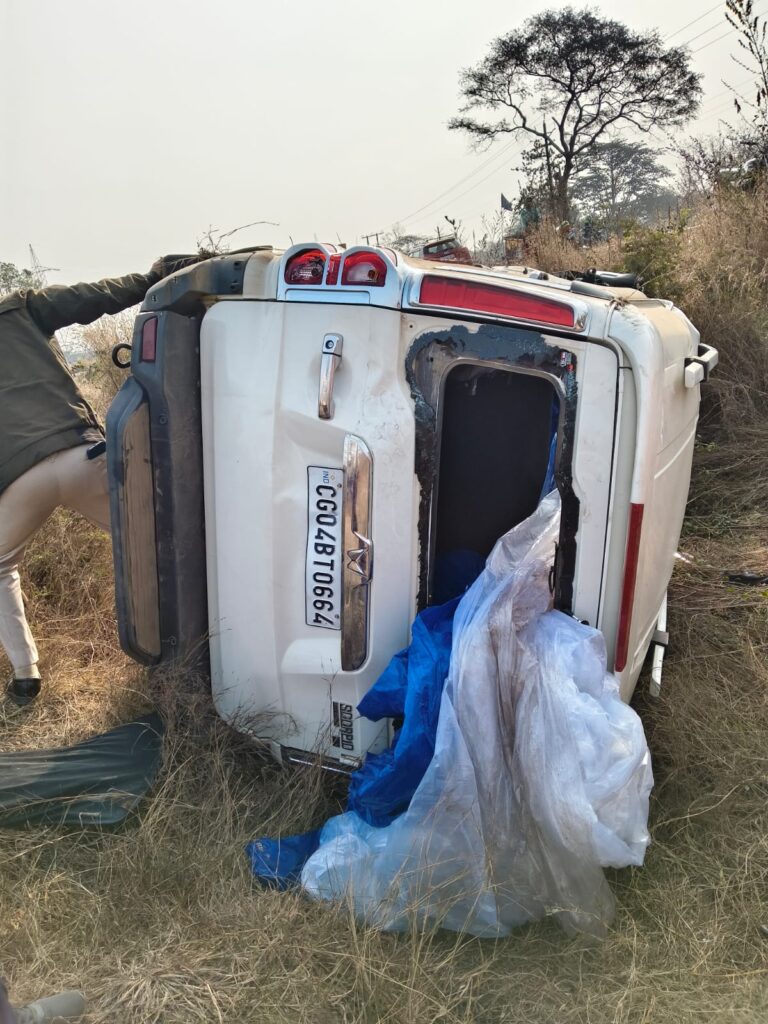 ➡️ एनएच-49 पर तेज रफ्तार स्कॉर्पियो पुलिस को देखकर भागी, अमलीभौना HP पेट्रोल पंप के सामने पलटी