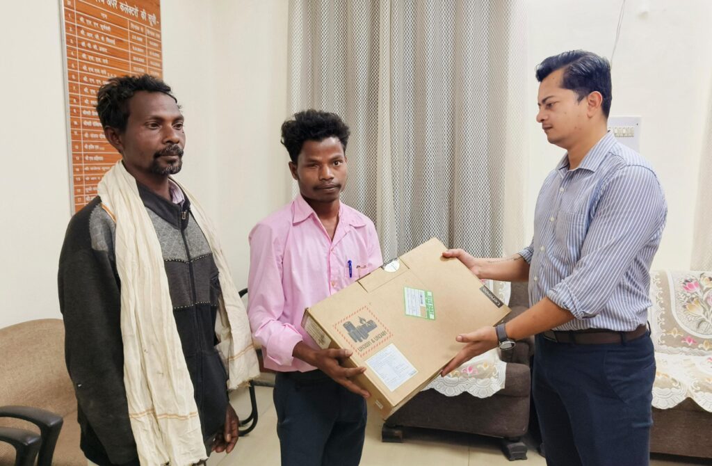 कलेक्टर के निर्देशानुसार जिला कलेक्टोरेट में अपर कलेक्टर श्री अपूर्व प्रियेश टोप्पो द्वारा गोविंद दास को लैपटॉप प्रदान किया गया। लैपटॉप प्राप्त होने से छात्र को स्वअध्ययन, ऑनलाइन अध्ययन सामग्री तथा शैक्षणिक कार्यों में सुविधा मिलेगी। इस अवसर पर छात्र एवं उसके पिता ने जिला प्रशासन के प्रति आभार व्यक्त किया। अपर कलेक्टर श्री टोप्पो ने कहा कि जिला प्रशासन का उद्देश्य है कि कोई भी प्रतिभावान छात्र केवल आर्थिक या संसाधनों की कमी के कारण अपनी पढ़ाई से वंचित न रहे।