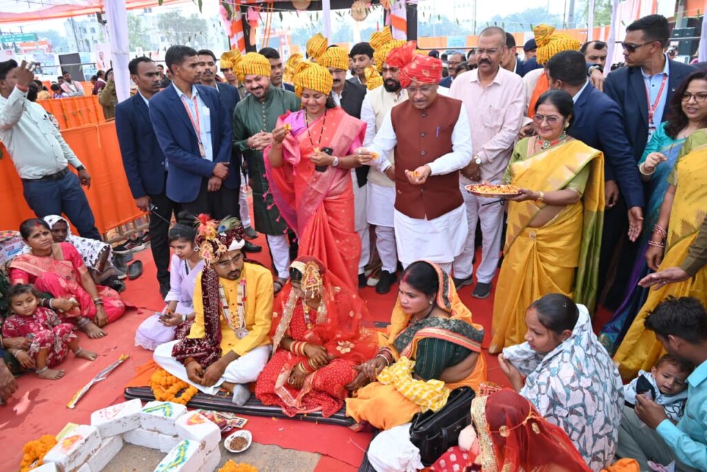 रायगढ़, / छत्तीसगढ़ के इतिहास में आज का दिन सामाजिक सरोकार और जनकल्याण की दृष्टि से स्वर्णिम अध्याय के रूप में दर्ज हो गया। मुख्यमंत्री कन्या विवाह योजना के अंतर्गत आज प्रदेशभर में एक साथ 6 हजार 414 जोड़ों ने विवाह कर नए जीवन की मंगल शुरुआत की। कार्यक्रम में मुख्यमंत्री श्री विष्णुदेव साय नवविवाहित जोड़ों को आशीर्वाद एवं शुभकामनाएं देते हुए उनके सुखमय, समृद्ध और सफल वैवाहिक जीवन की कामना की। इस अवसर पर महिला बाल विकास एवं समाज कल्याण मंत्री श्रीमती लक्ष्मी राजवाड़े सहित अन्य मंत्रीगण उपस्थित रहे।
