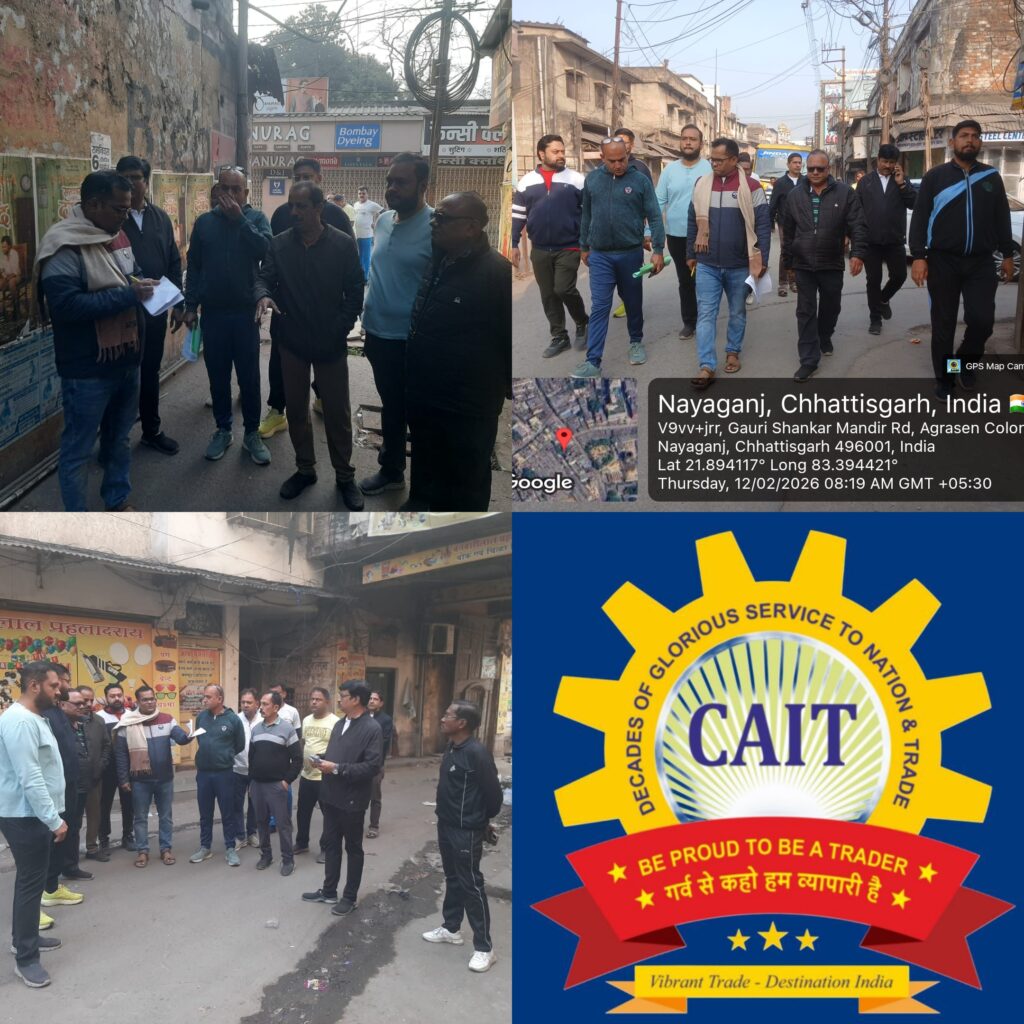 रायगढ़ , रायगढ़ के पारंपरिक बाजारों को आधुनिक और सुविधाजनक ‘स्मार्ट बाजार’ में तब्दील करने की दिशा में एक बड़ी प्रगति हुई है। कन्फेडरेशन ऑफ ऑल इंडिया ट्रेडर्स (CAIT) की पहल पर जिला प्रशासन ने संज्ञान लेते हुए जमीनी स्तर पर सुधार कार्य शुरू करने की तैयारी कर ली है। आज इसी सिलसिले में नगर निगम कमिश्नर और कैट की टीम ने संयुक्त रूप से शहर के प्रमुख व्यापारिक क्षेत्रों का निरीक्षण किया।