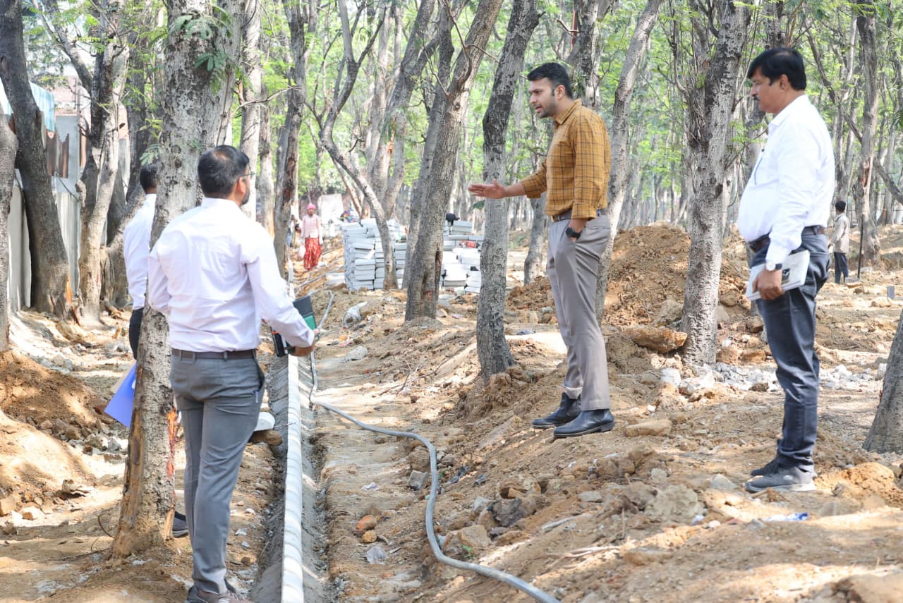 स्विमिंग पूल, सिंथेटिक एथलेटिक ट्रैक, पंचतत्व उद्यान और नाला निर्माण कार्यों का किया निरीक्षण