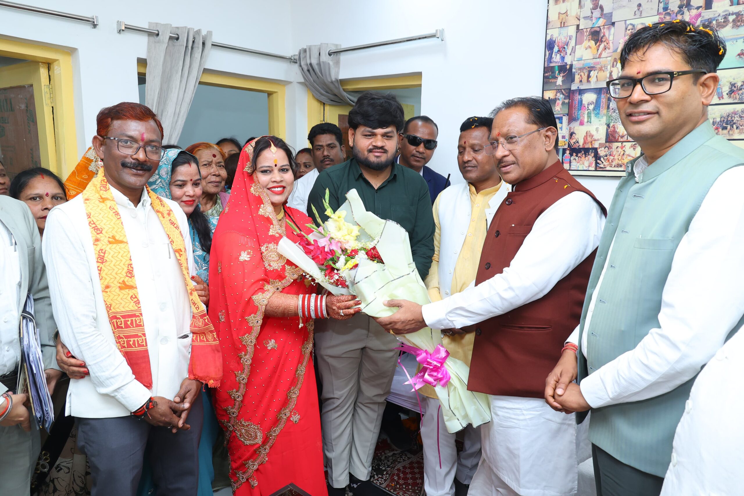 रायगढ़, । प्रदेश के मुख्यमंत्री श्री विष्णु देव साय आज रविवार को रायगढ़ प्रवास के दौरान महापौर श्री जीवर्धन चौहान के सोनूमुड़ा स्थित पैतृक निवास पहुंचे। इस अवसर पर उन्होंने महापौर के बड़े भाई श्री गोवर्धन चौहान की पुत्री अंजू चौहान एवं कोरबा के बांकी मोगरा निवासी एश्वर्य चौहान को नव दाम्पत्य जीवन में प्रवेश पर आशीर्वाद एवं शुभकामनाएं प्रदान कीं।